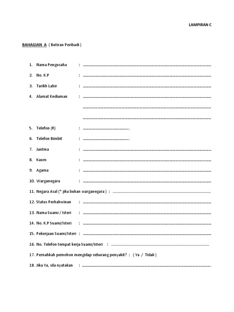 Lampiran C Borang Permohonan Sebut Harga Tender Kantin Sk Pdf