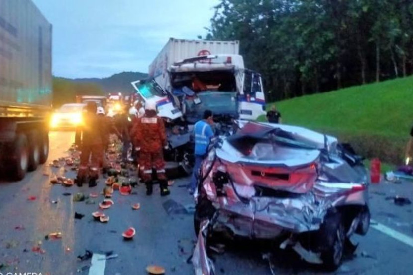 3 Sekeluarga Maut 1 Parah Kereta Rempuh Treler